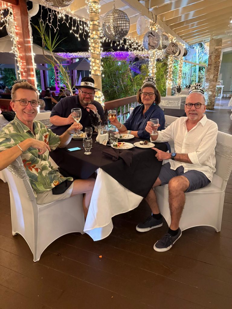We then had the pleasure of a second successive New Year’s Eve on the beach at the Barbados Yacht Club. Toes in the sea at midnight. Absolutely marvellous.