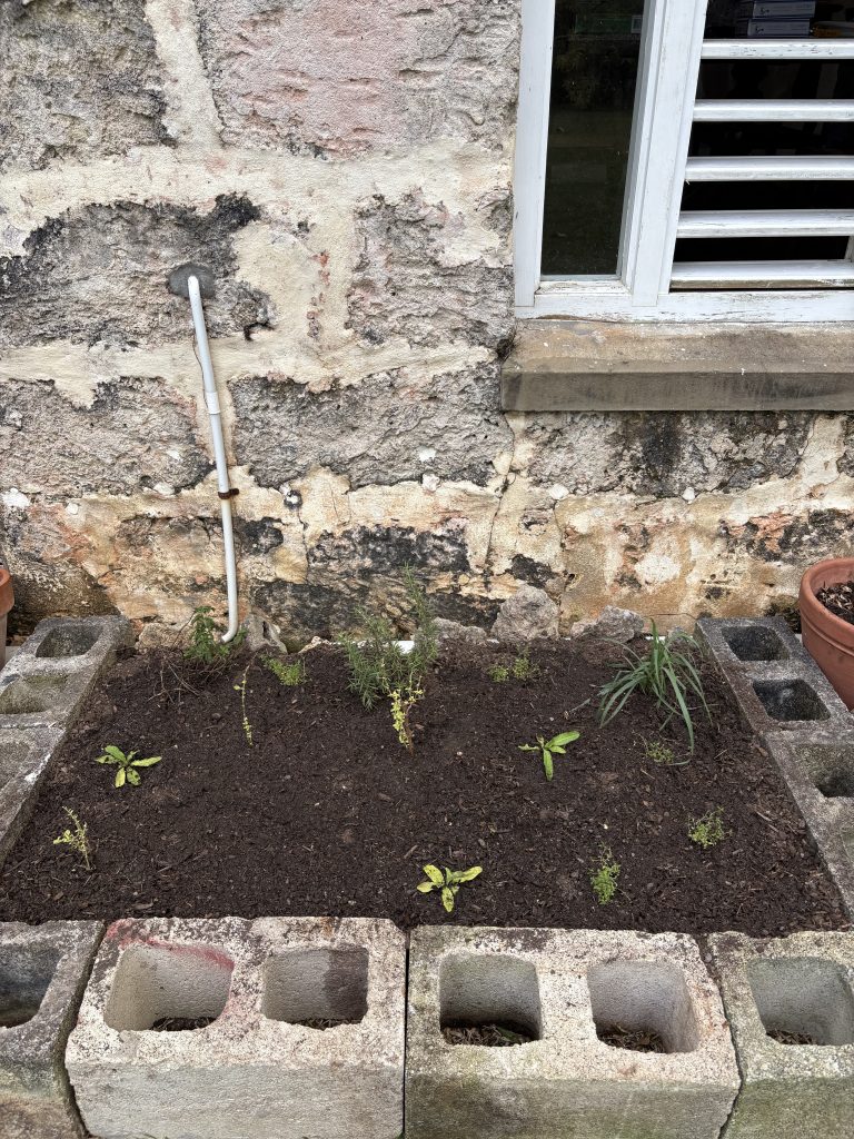 Brian and I, but mostly Brian set about creating a herb bed. In it goes … Rosemary, thyme, Guyanese Thyme, lemon grass, and Shadow Benet. The latter is a much sought after cilantro… difficult to grow but let’s give it a go. The results…