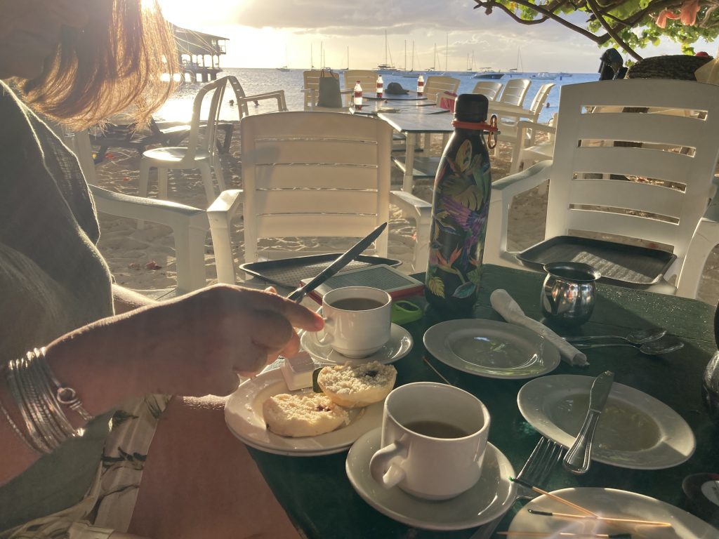 …and today’s experience on the south coast of Barbados is every bit as enjoyable. The ham sandwich is divine! With a feeling of great satisfaction and no little relief we raise a cuppa to what we have achieved. A major milestone for us.