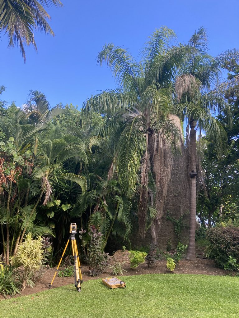 We hotfoot it from the super swanky air conditioned banking suite to the steamy cane fields and our appointment with the surveyor for the fabled line marking. We are overwhelmed by the beauty of the place we are buying. More of that very soon – but here’s a sneak preview of the mill nestling behind the surveyor’s (absolutely essential!) tool…