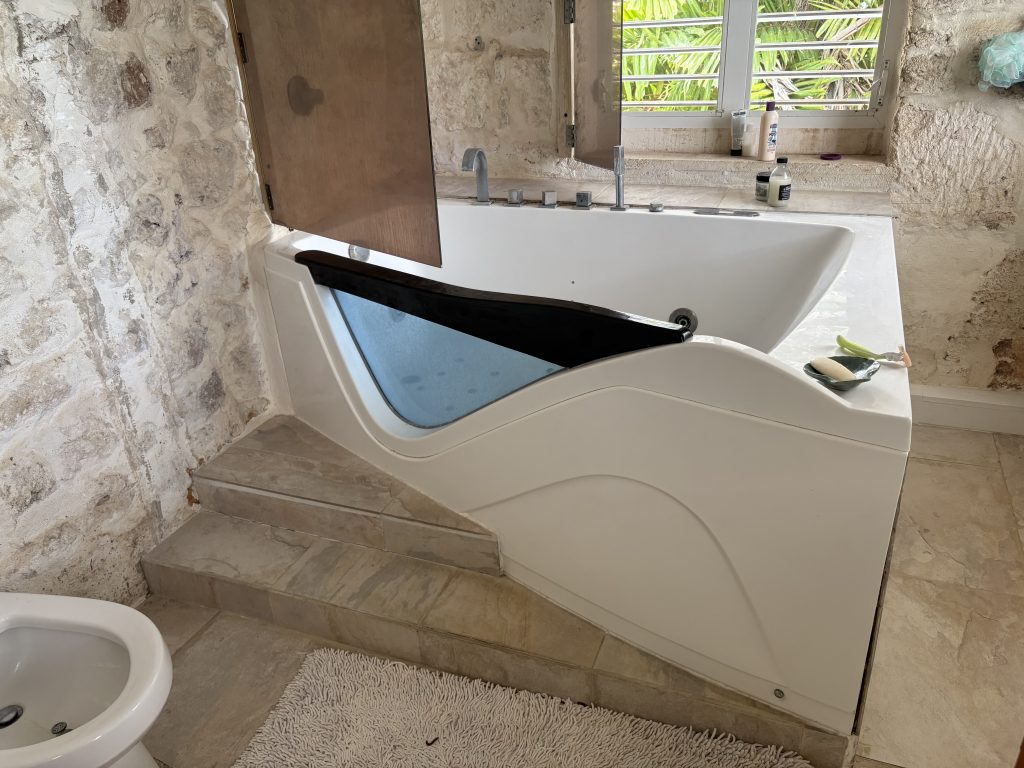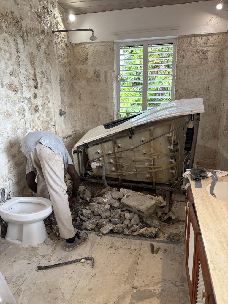 We are not particularly fancy people but knew the minute we bought Pollards, we would at some point have to tackle the ensuite and in particular the huge, fancy, jet packed, spa tub …. In this climate, when you have a pool under the trees to soak in, when water is a precious commodity… bonkers.