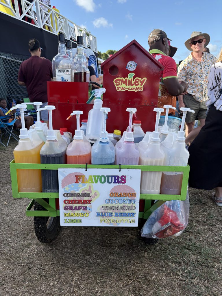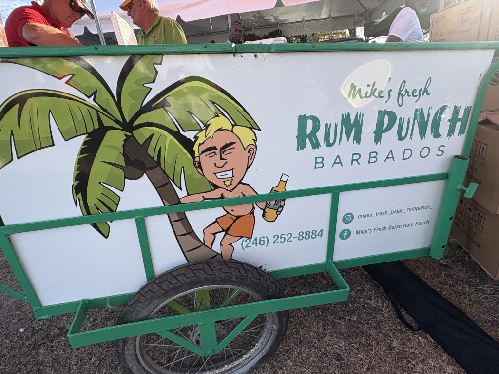 Stationing ourselves next to Mike’s rum punch cart … no better place to be … we loaded up with a stiff serving of the island’s best rum punch and some fish cakes and made our way to the bookies to study the form and splash some cash …. Well … good job I had the rum punch on board and I could see the funny side …