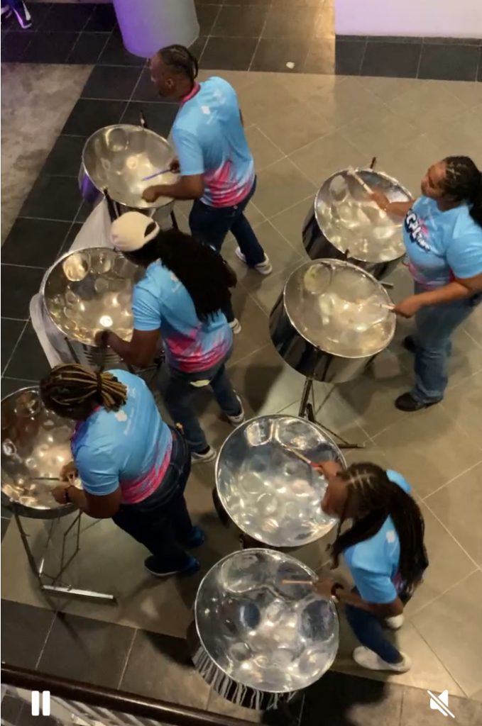 We returned to Kensington Oval on Friday for Barbados Royals v Trinbago Knight Riders. (Not another post about cricket, please – Ed. OK, OK…) With the house stuffed full of Trinis it was only right and proper that a steel band provided the sounds in our stand…