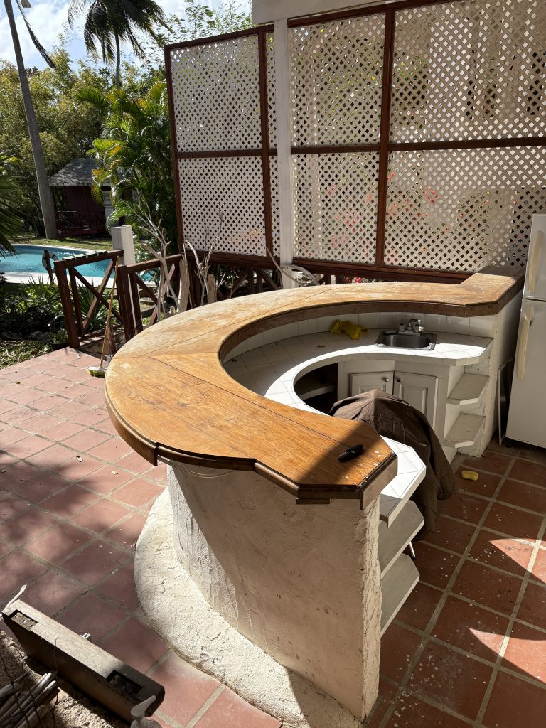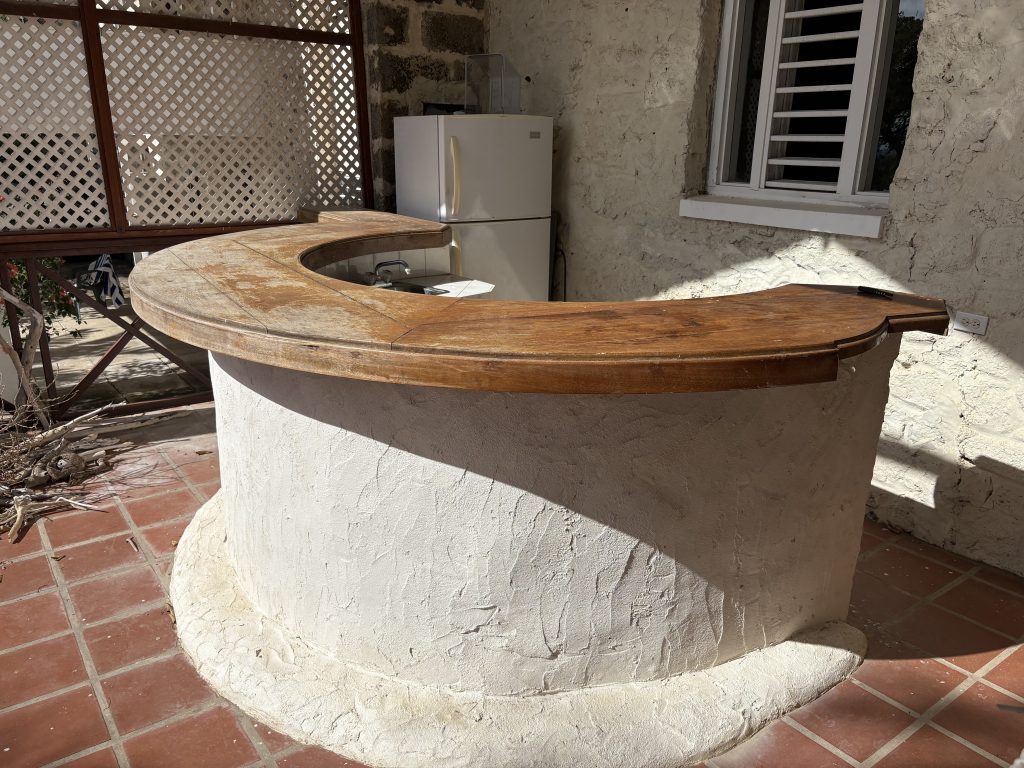 With decks truly cleared now the skip has been filled and collected, we have turned our minds to the bar. Once a magnificent beast it has been battered by the sun and needs some TLC. We have a target. We are having a party on 22nd February. My dear father died on 18th December and we plan to celebrate his life with a memorial party at Pollards Mill. He would have been so excited to see our new home and be so enthusiastic about the project, getting stuck in with practical solutions and be all over the history. I feel him around us. It’s fitting that we can celebrate his life in the country of our forefathers.