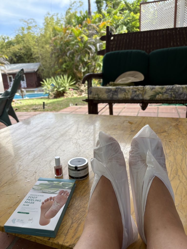 Home. It’s definitely feet up time. We deserve it. I definitely need it, my trotters are decidedly unkempt.