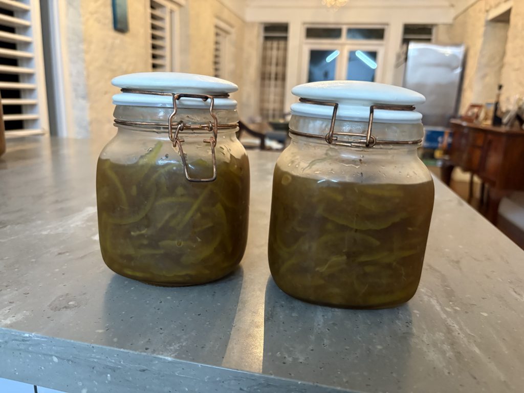 The monkeys were having a real spat about something, it was early doors, but they get up early. They have been onto our patio early mornings leaving half eaten fruit and other little presents so I leapt out of bed to see what was irking them … they were up the sour orange tree bending the low branches and taking a bite out of the fruit deciding it was too sour. Enough … I raced down there and a face off ensued. Yes I won and I walked away from our showdown with armfuls of oranges whilst they chattered and complained in the trees above. Anyway there are still more on the tree, for them and for cocktails. Even I will accept there only so many cocktails you can make and given a new batch of VIPs arriving on Sunday, marmalade it was. A vat of marmalade.