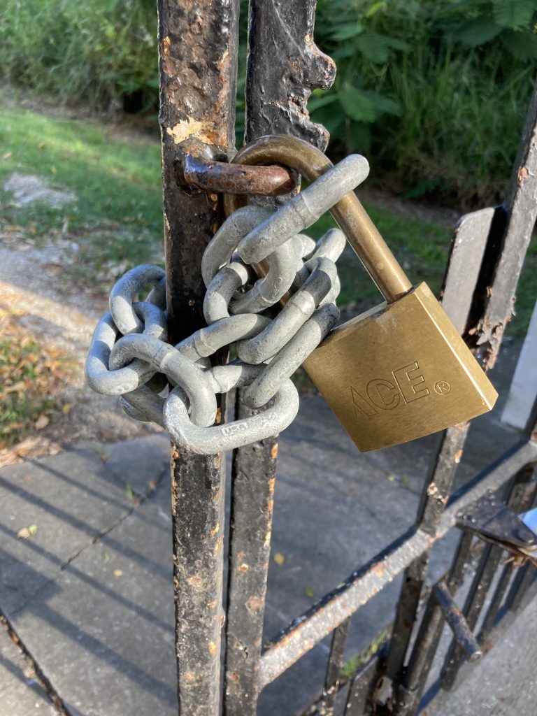 Needless to say we swiftly procured a hefty padlock and chain from our favourite local hardware store…