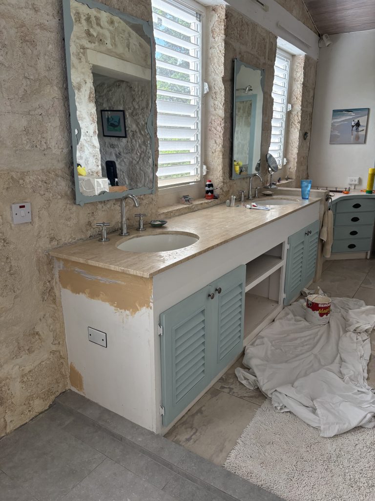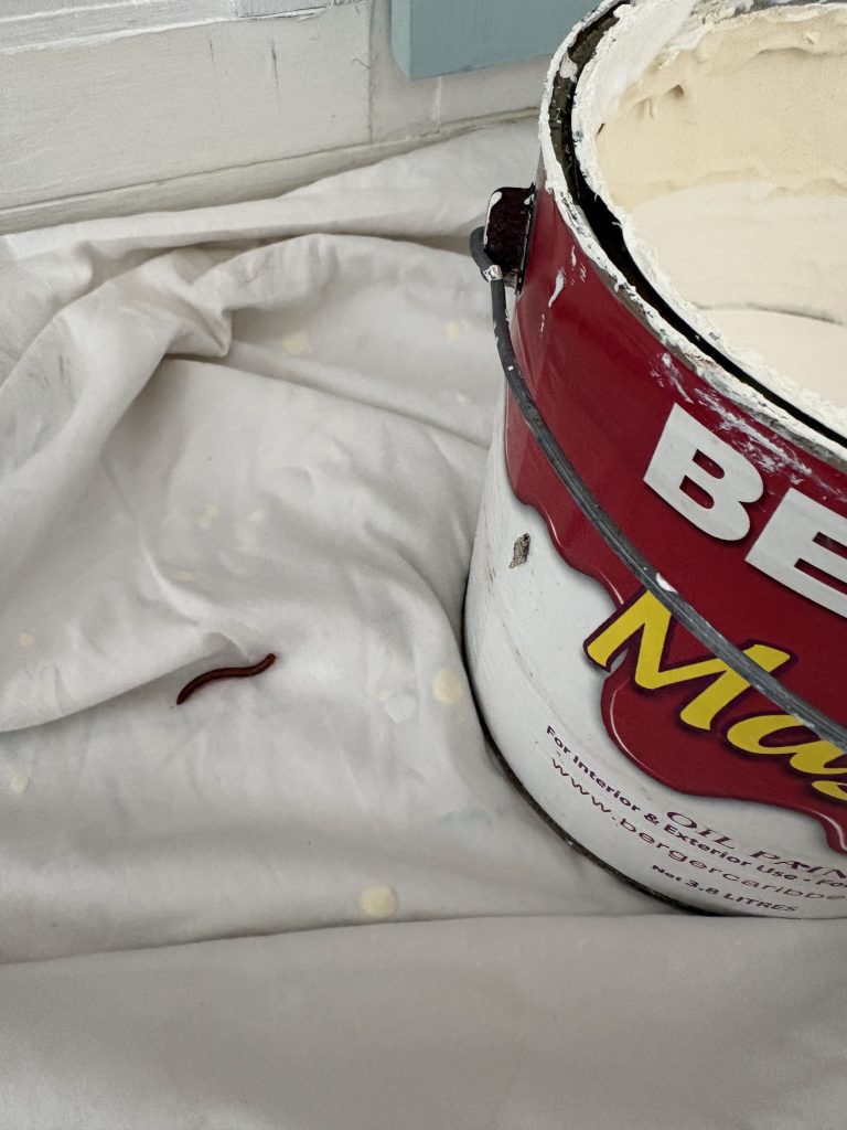 It’s been a long time coming and no, we have not been keeping our progress hidden. Finally we are on the homestretch to finish the ensuite. We are at the final wash up stage. The new cupboard doors and the refurbished drawers have highlighted the off white paint work and so a touch up has been on the pending list. We understandably just did not have time to do it with all the wedding shenanigans back in October. So today it got to the top of our to do list.